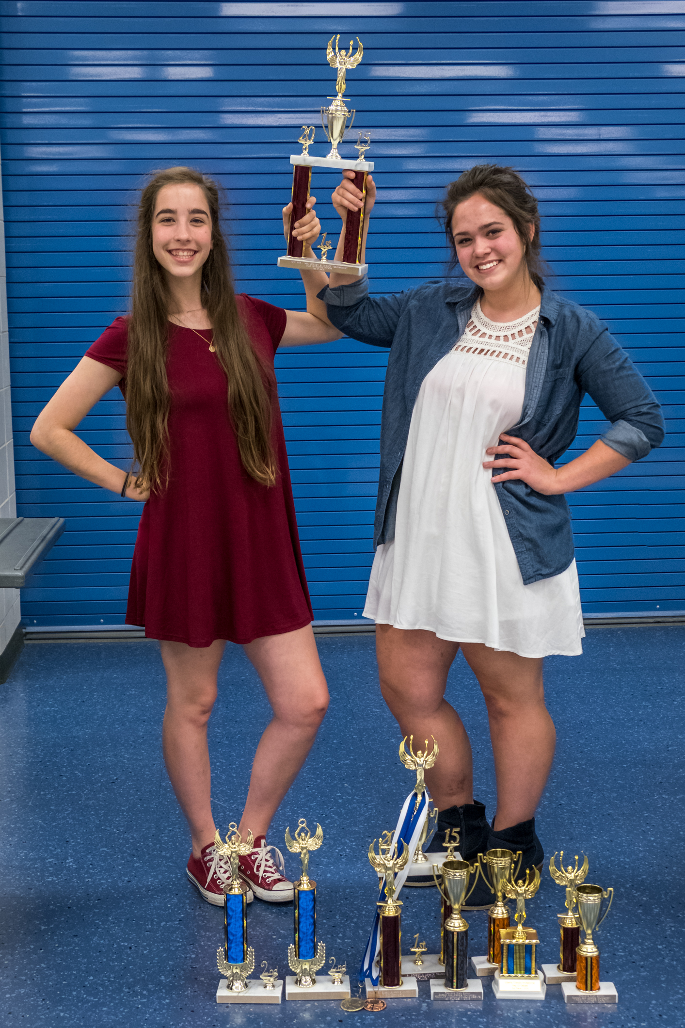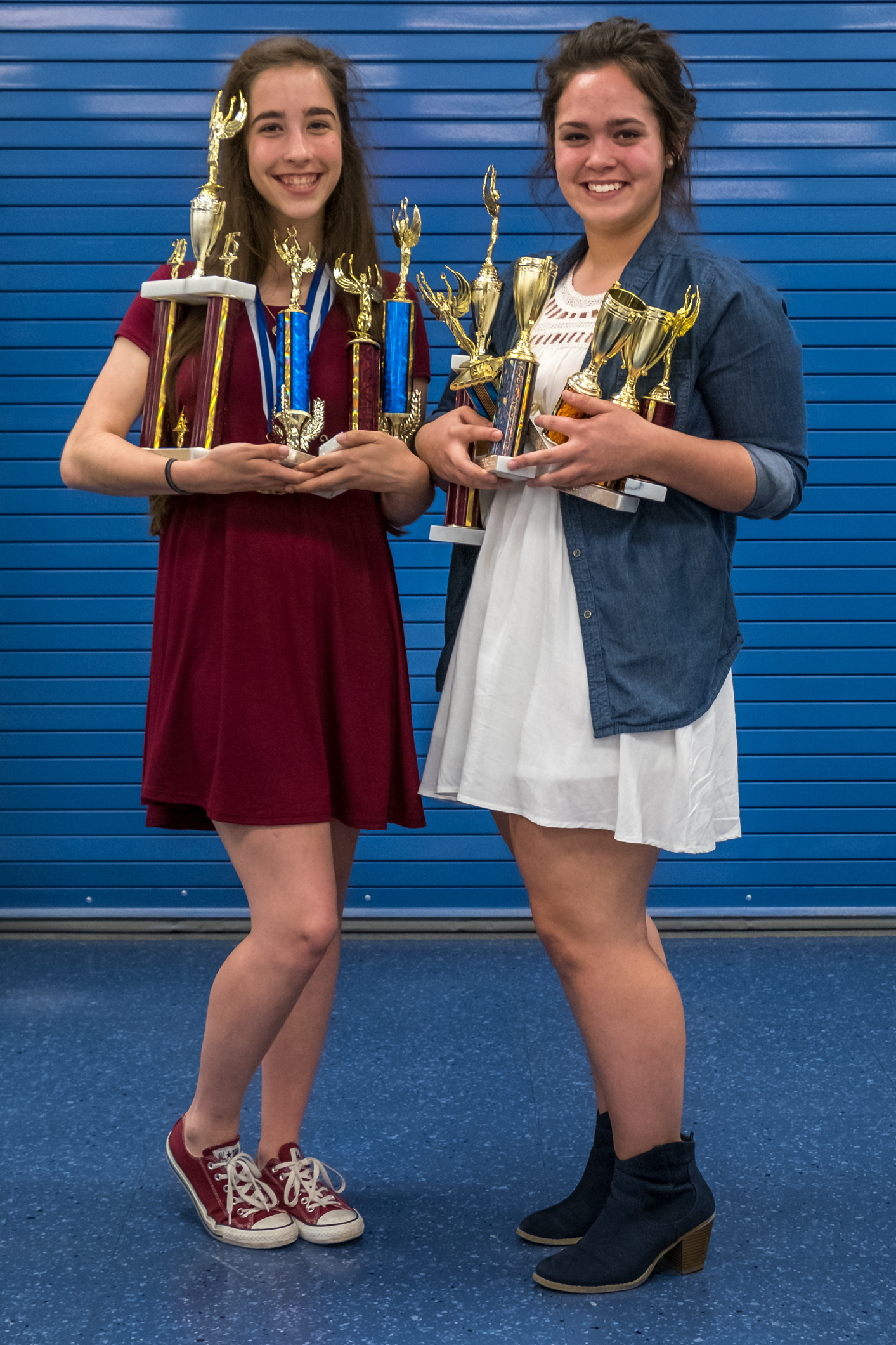 Lanie & Madison trying not to drop their trophies. Copyright © 2016 Gary Allman, all rights reserved. Tonight we went with Lanie to collect her speech and debate trophies