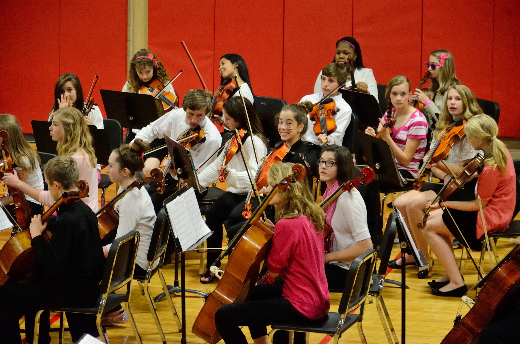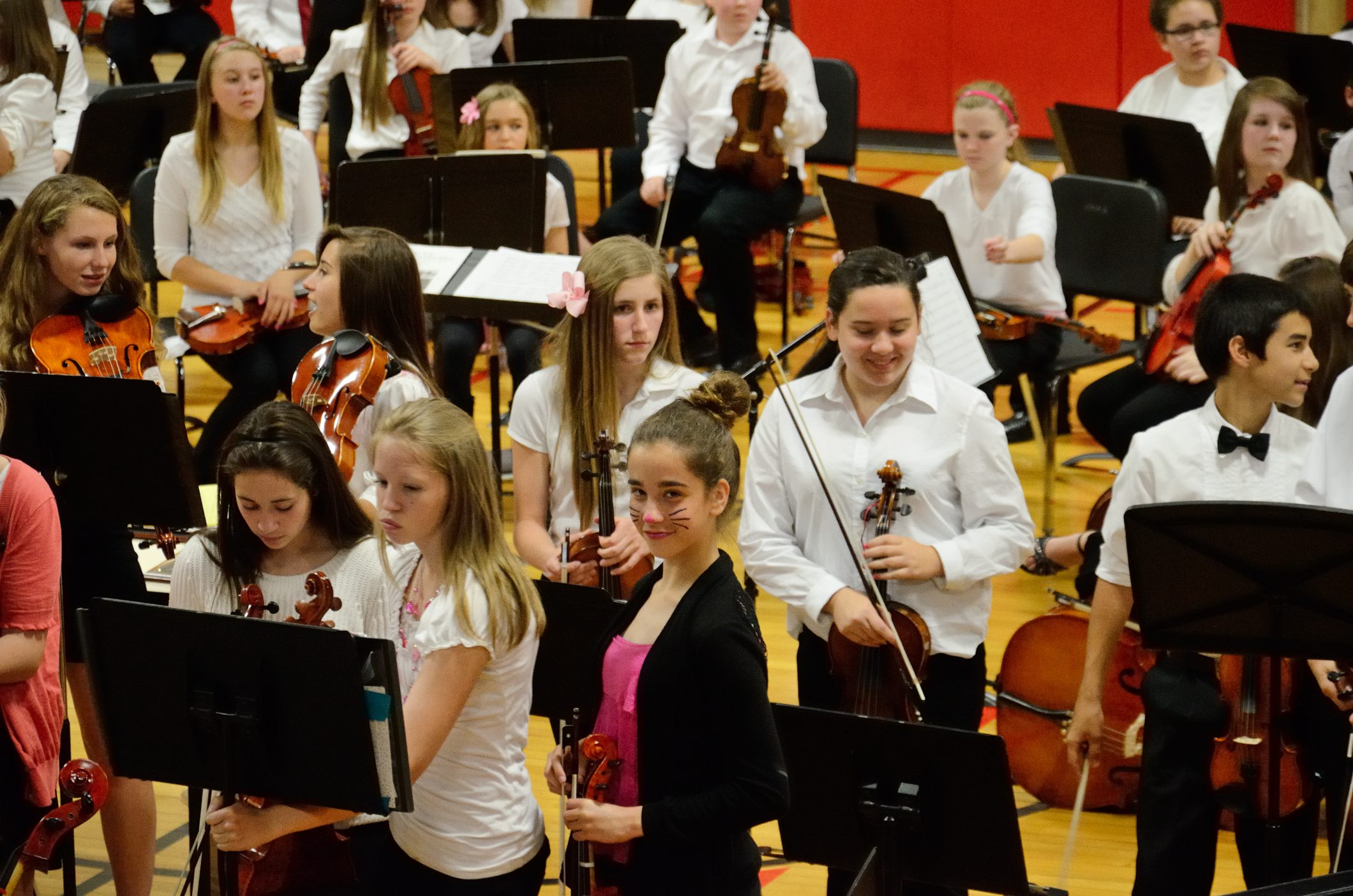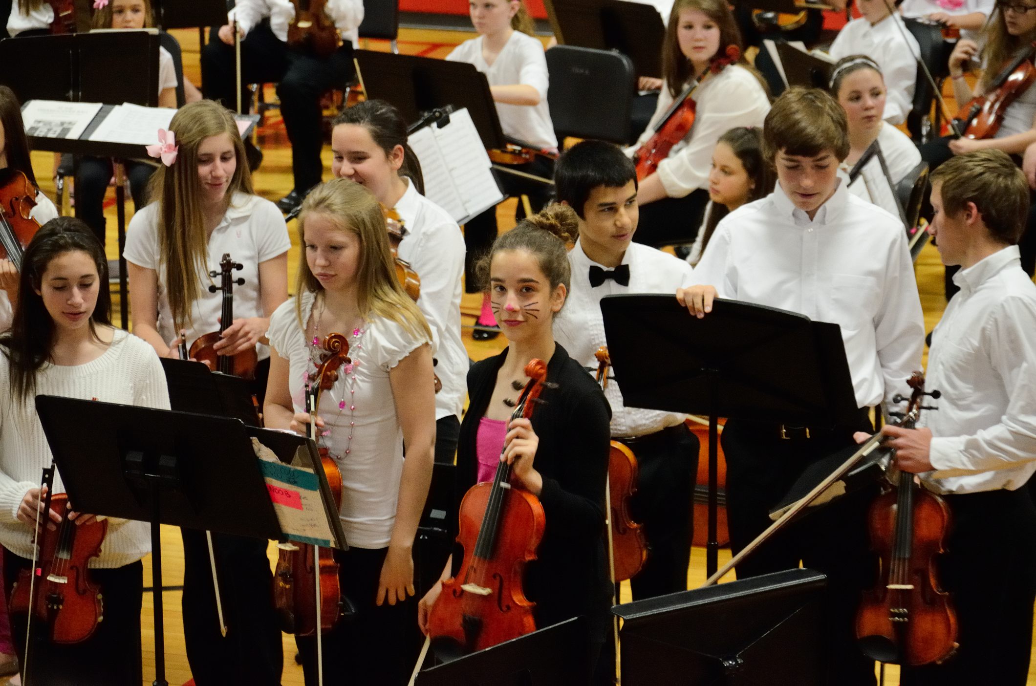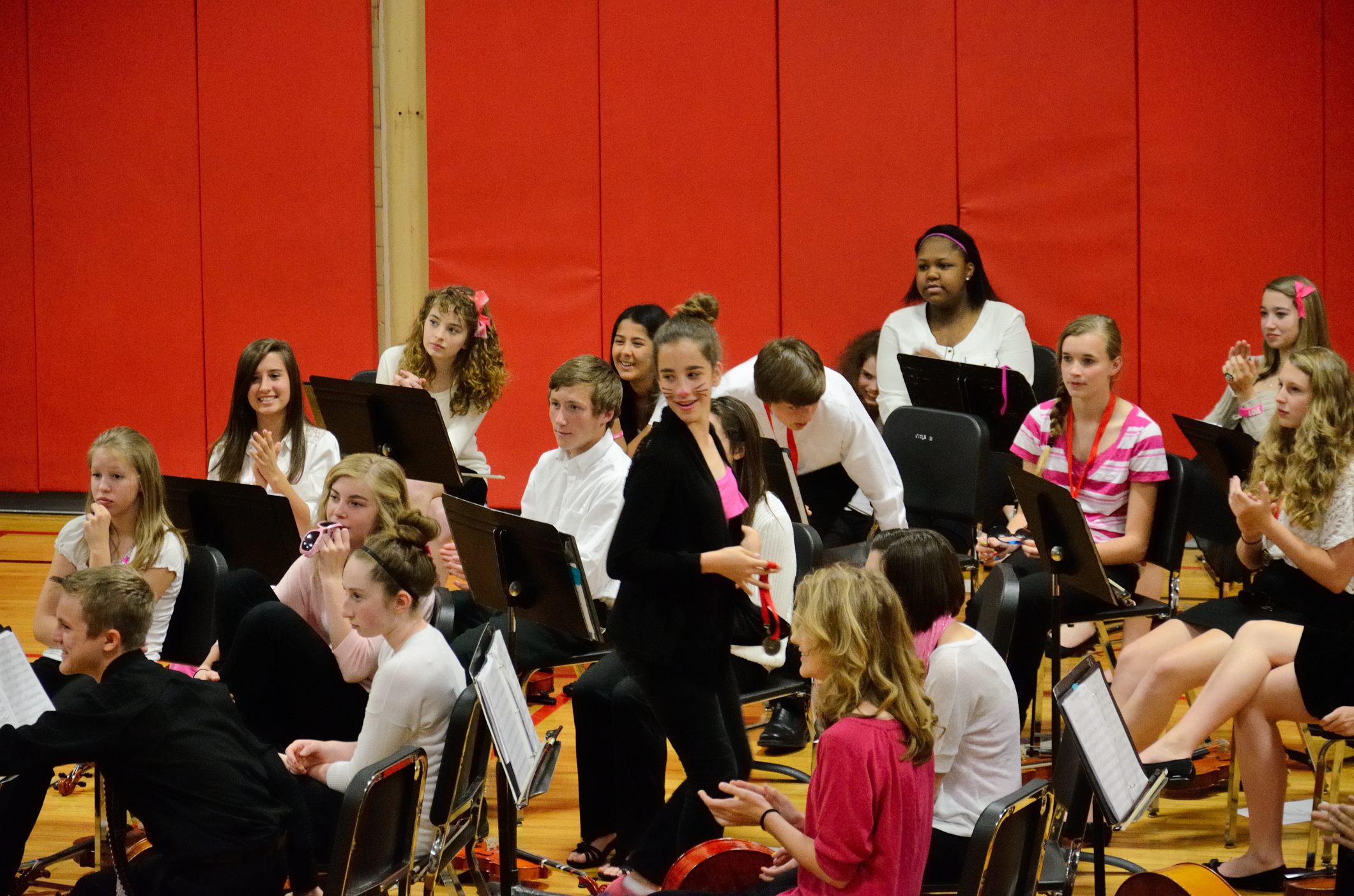 It’s a tradition for the concert to finish with the 8th grade orchestra playing the theme tune from the movie ‘The Pink Panther’ which explains why there is a lot of pink to be seen, and why some students, like Lanie, have panther whiskers.
