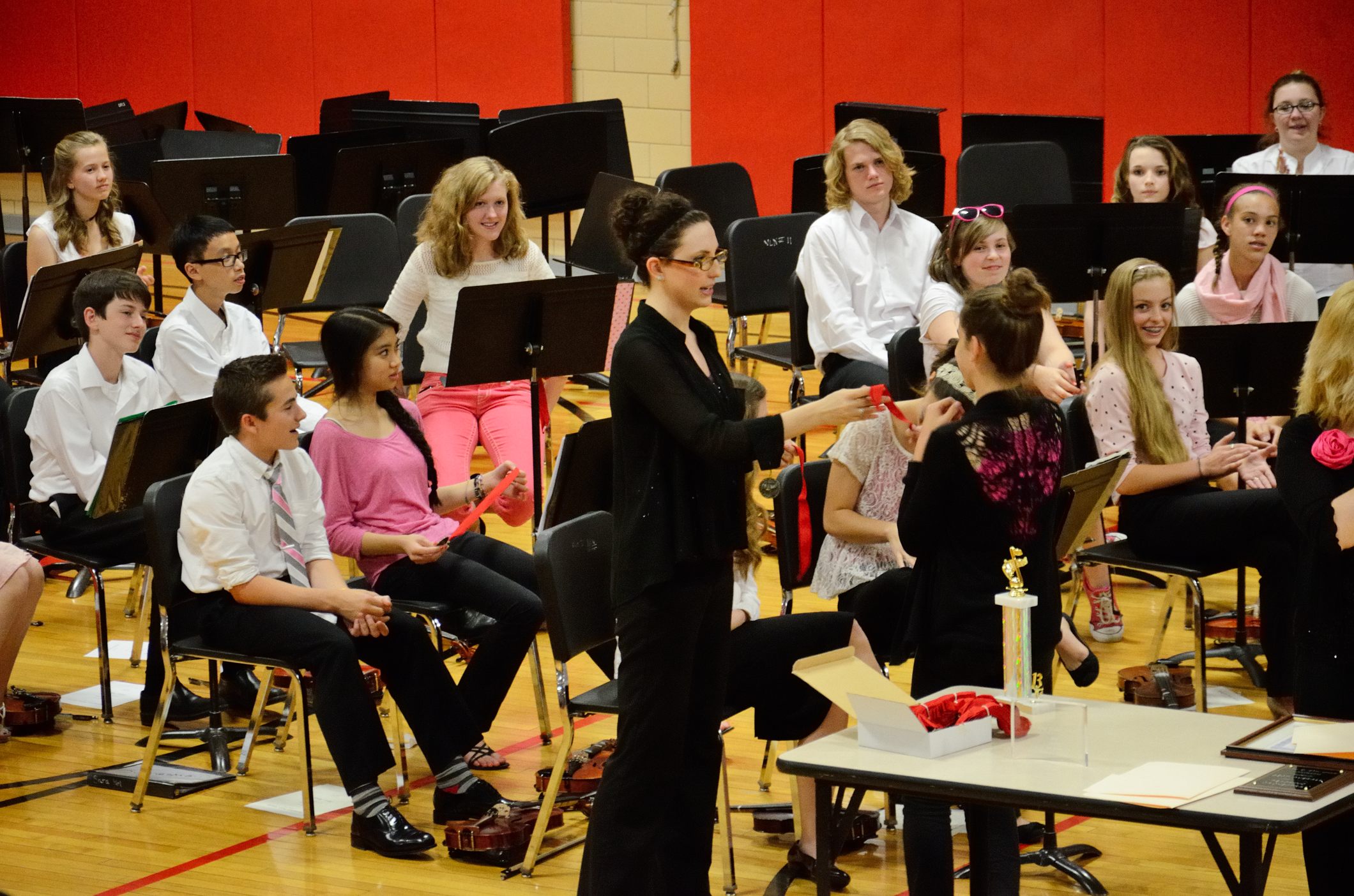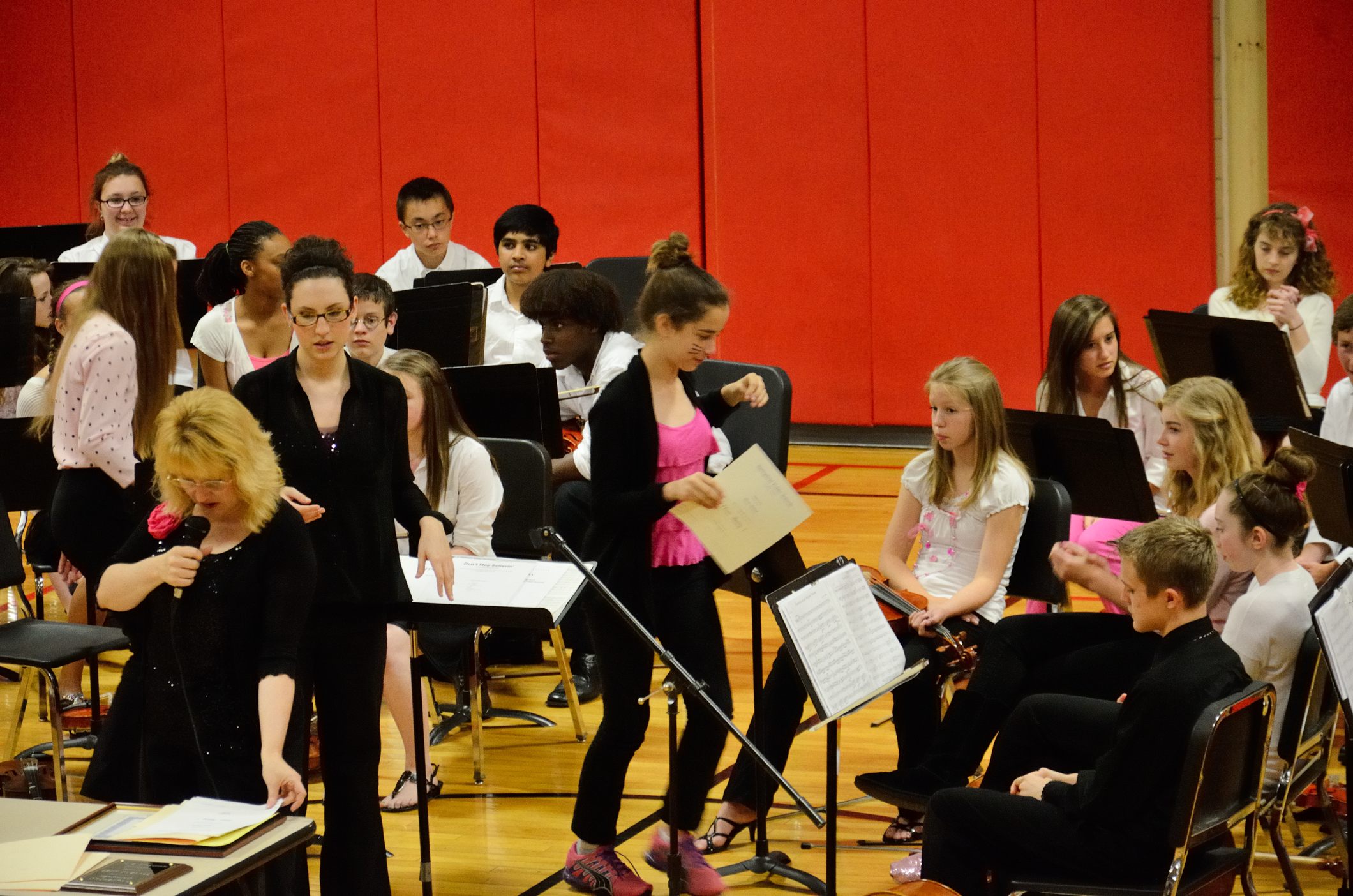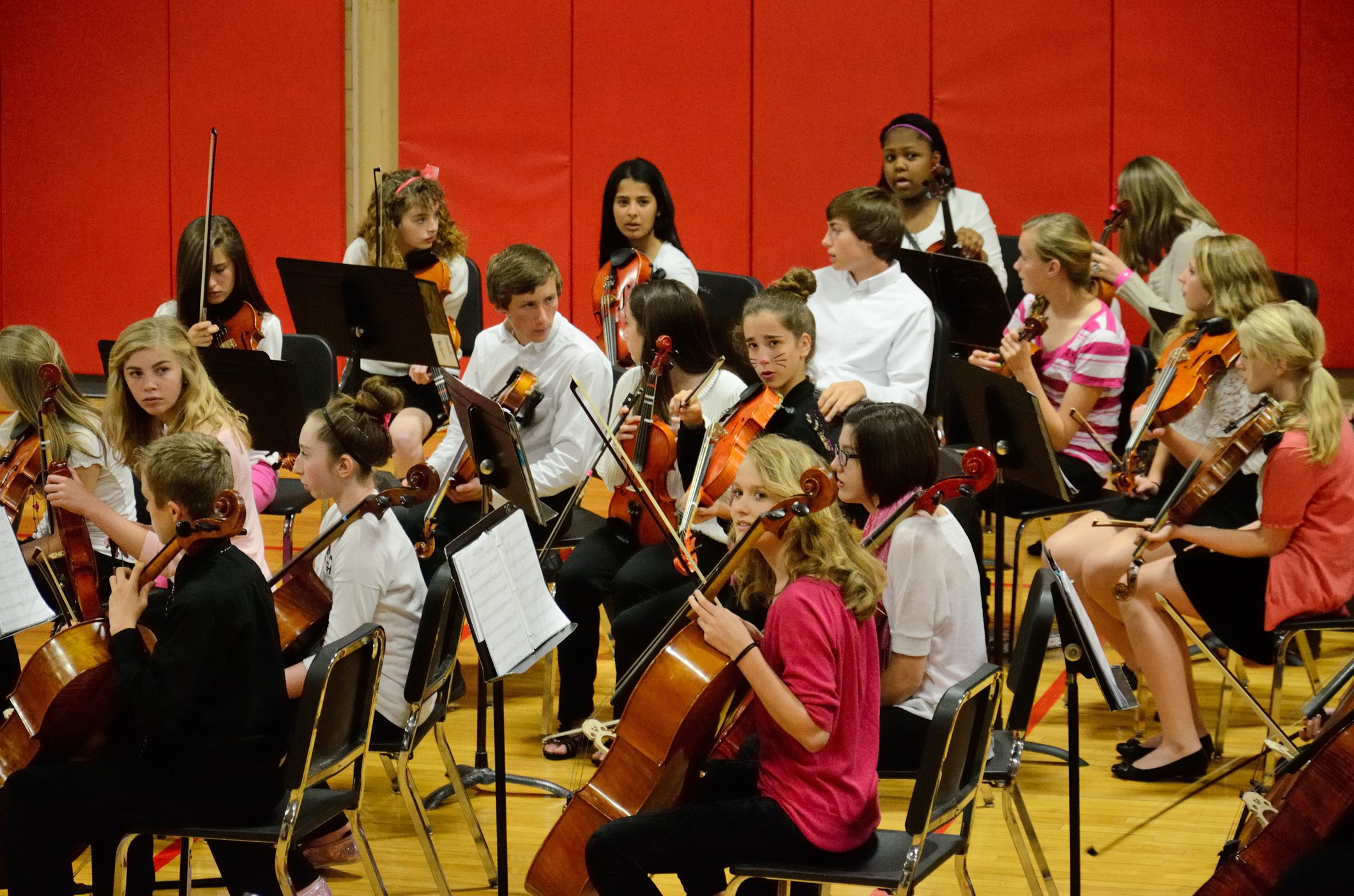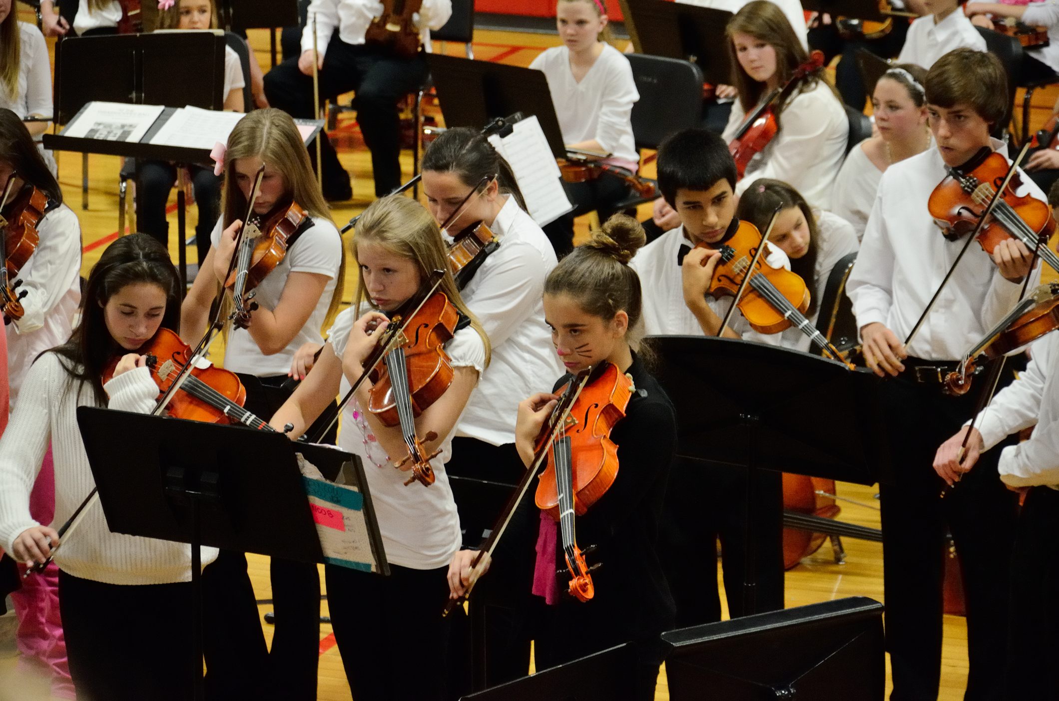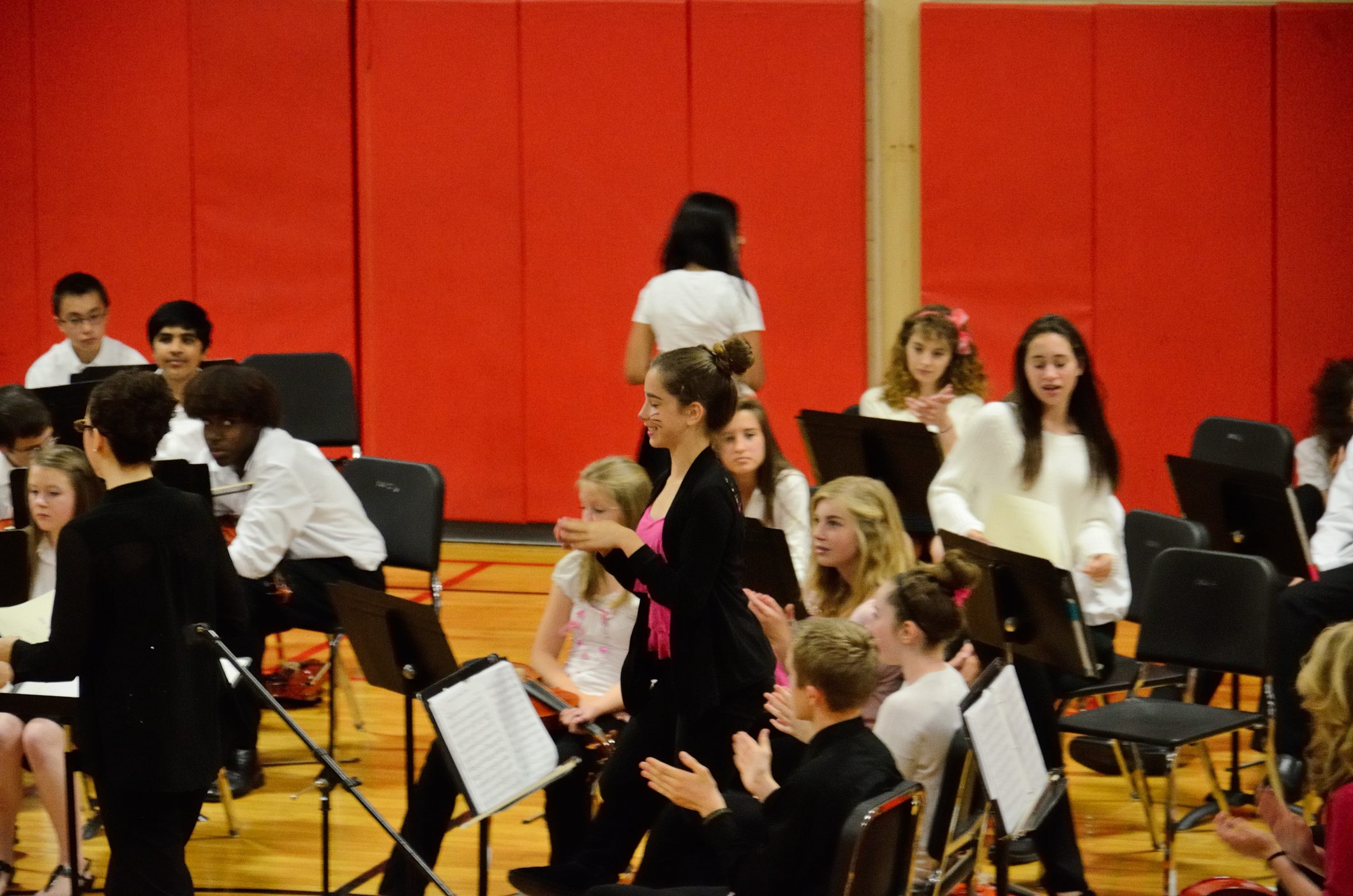 It’s a tradition for the concert to finish with the 8th grade orchestra playing the theme tune from the movie ‘The Pink Panther’ which explains why there is a lot of pink to be seen, and why some students, like Lanie, have panther whiskers.