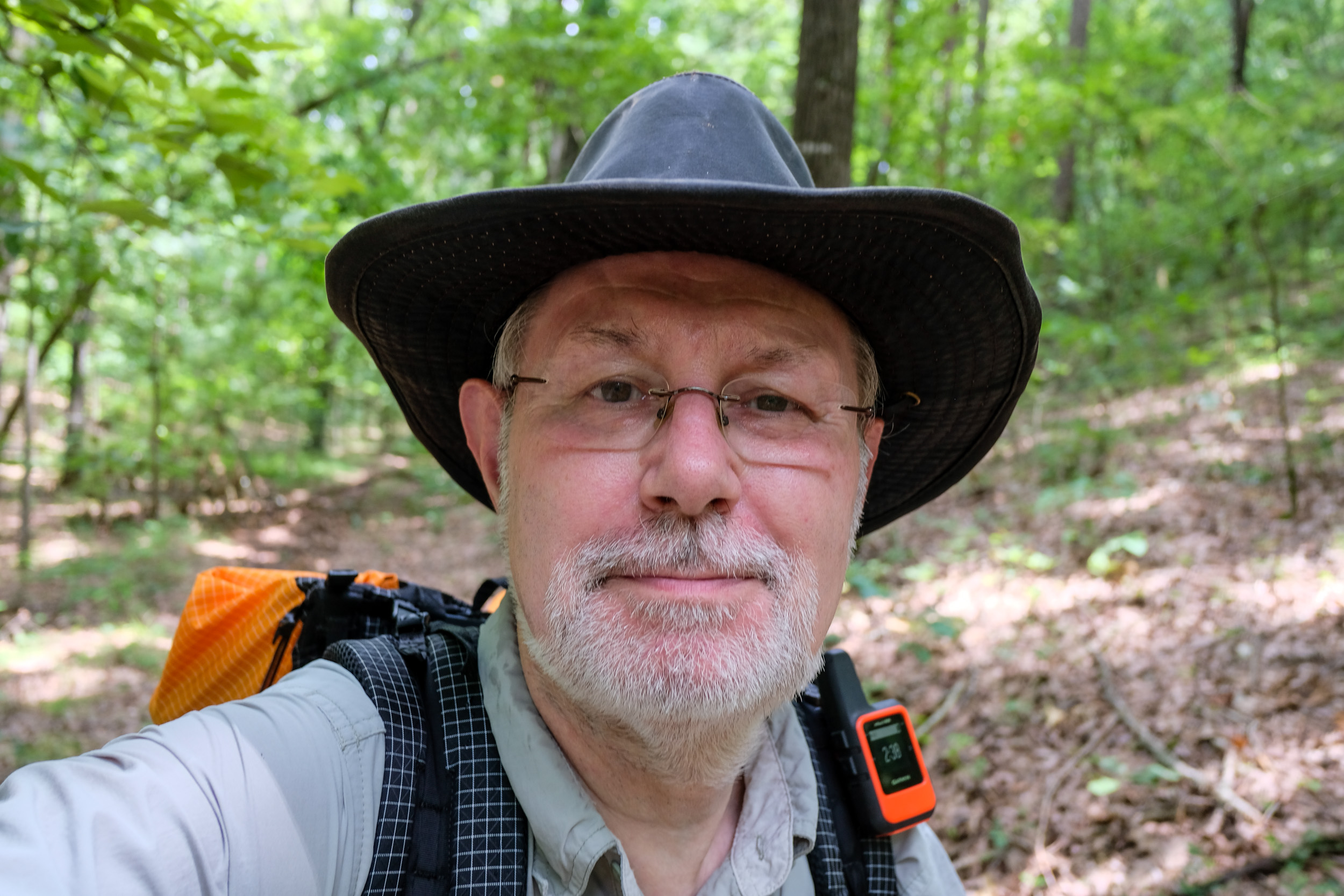 Gary on the Lake Trail at Piney Creek Wilderness. Piney Creek Wilderness – Day Three. Copyright © 2020 Gary Allman, all rights reserved. Continuing the tradition, I took a selfie by one of the downed trees on the Farm Track Trail. As I’ve pointed out before, this is not representative of what the best-dressed hiker/backpackers would be seen wearing, but my choice of clothing is comfortable in the 90°F weather I’m hiking in. And of course, as always, “It’s my hike.” 🙂