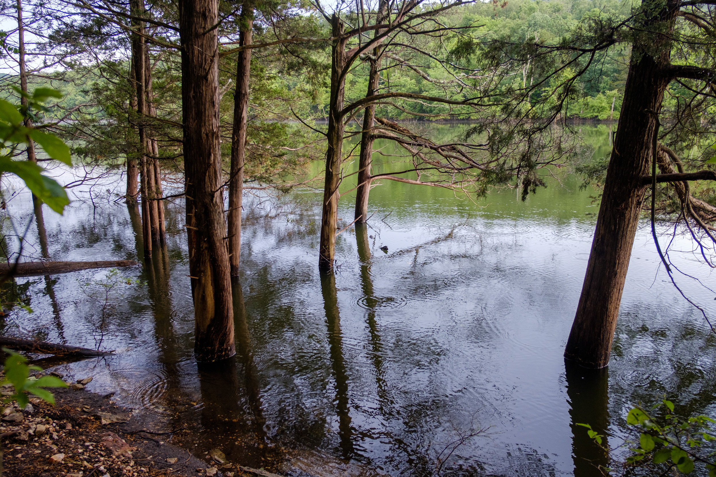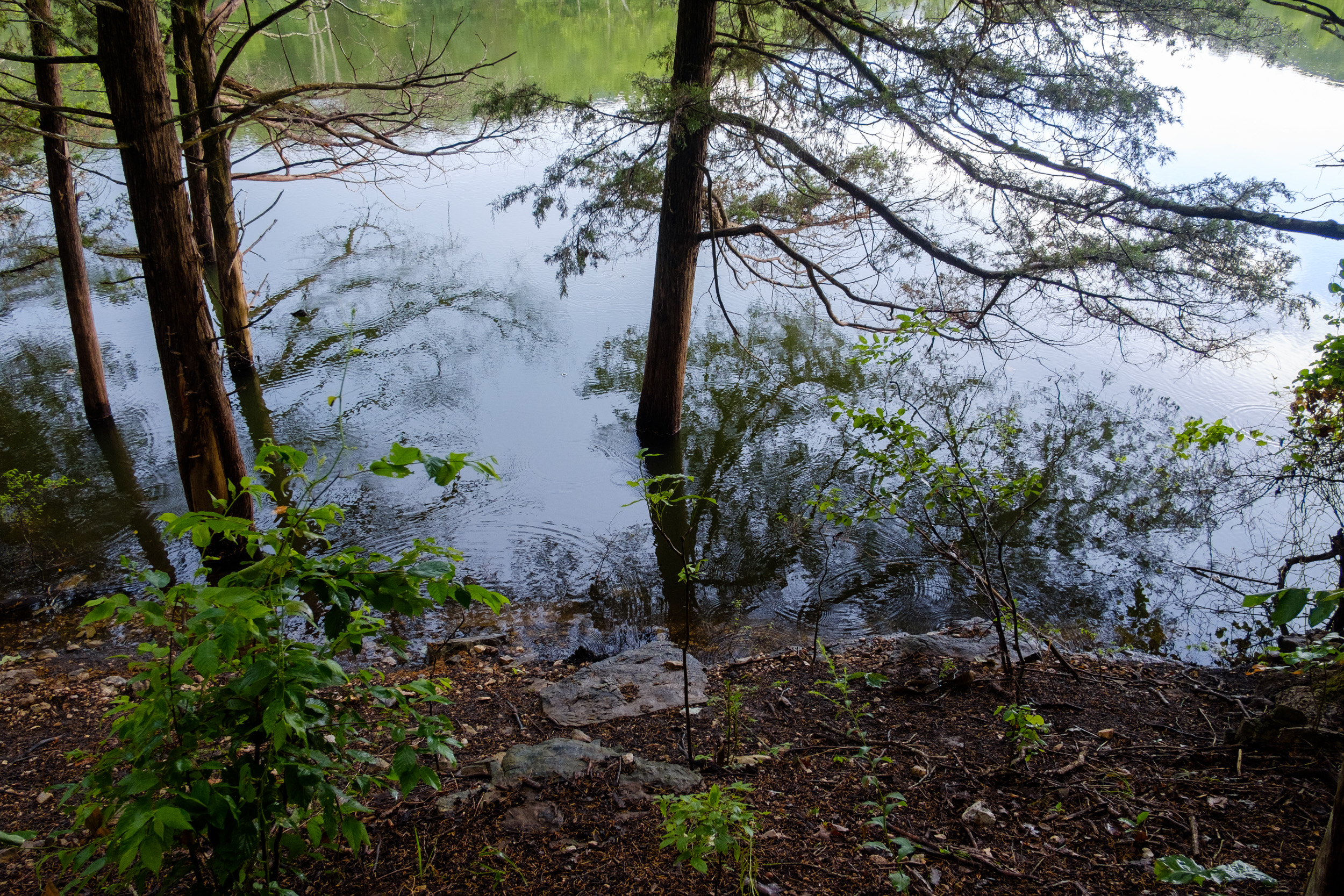 Bushwhacking my way out wasn’t easy. It took me three-quarters of an hour to hike less than a mile from my campsite back to the Farm Track Trail. Back near the trail junction, the lake had dropped enough for parts of the trail that had been underwater on Friday to now be visible again. Of course, the lower parts of the trail are still underwater (and yes you might have seen the pictures above before, I used them to illustrate my hike in when I couldn’t use my cameras because of the rain).