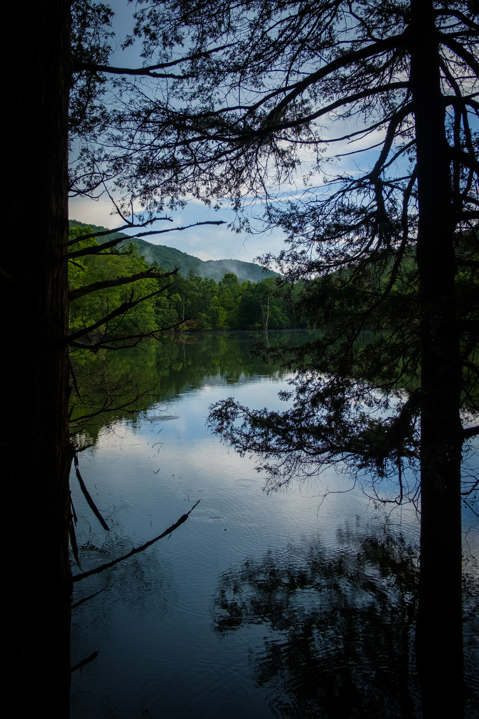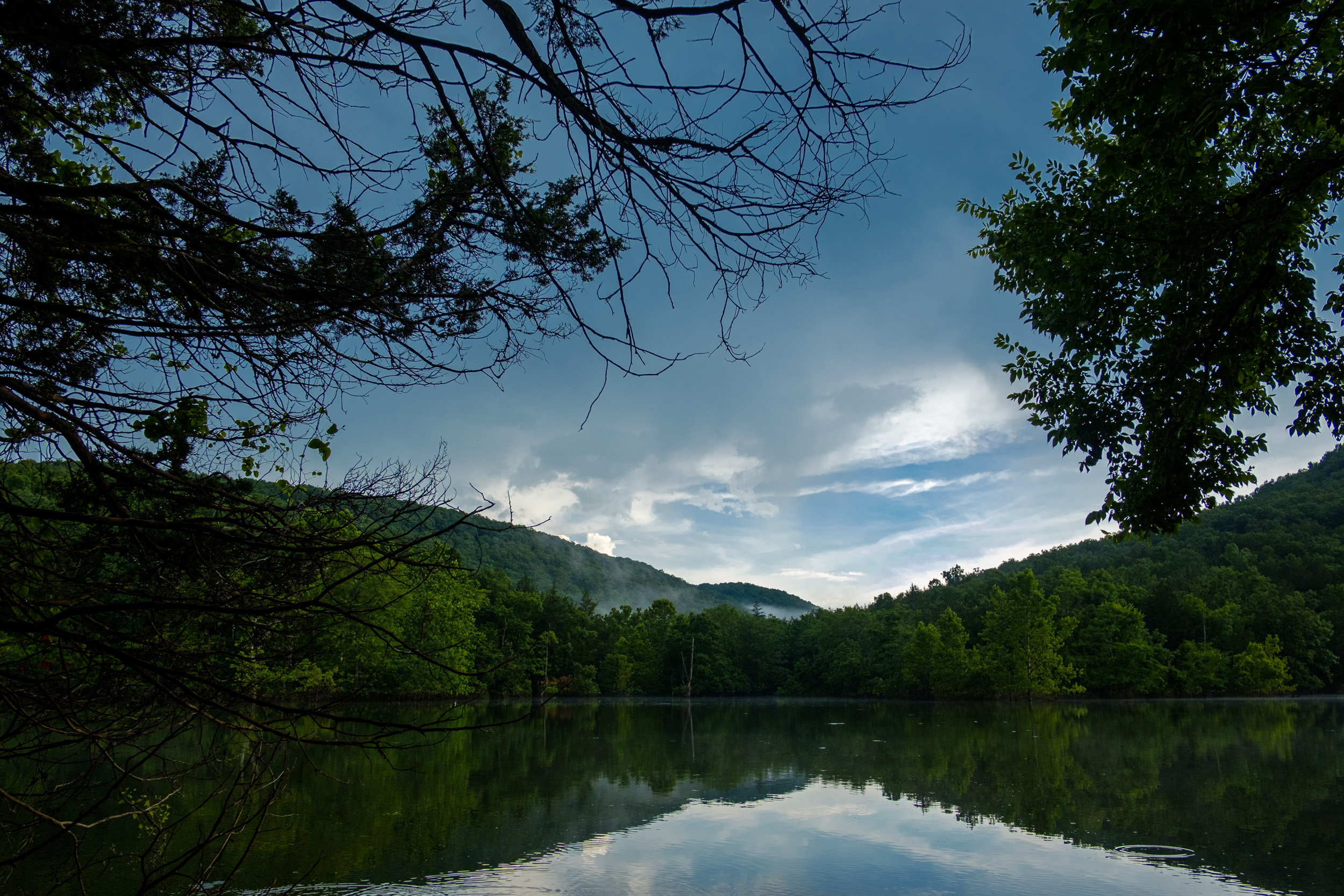 Temporary shelter – I quickly put the tarp up so I could get out of the rain. Quickly, but not before I had a swim. Piney Creek Wilderness – Day One. Copyright © 2020 Gary Allman, all rights reserved. Eventually, at around five, the rain stopped and the skies cleared. With the trees in the water and a steep drop off, I couldn’t find a spot for a sunset picture. Maybe I will have better luck tomorrow. I did swim out to the middle of the lake for a better view of the sunset but again no pictures for obvious reasons.