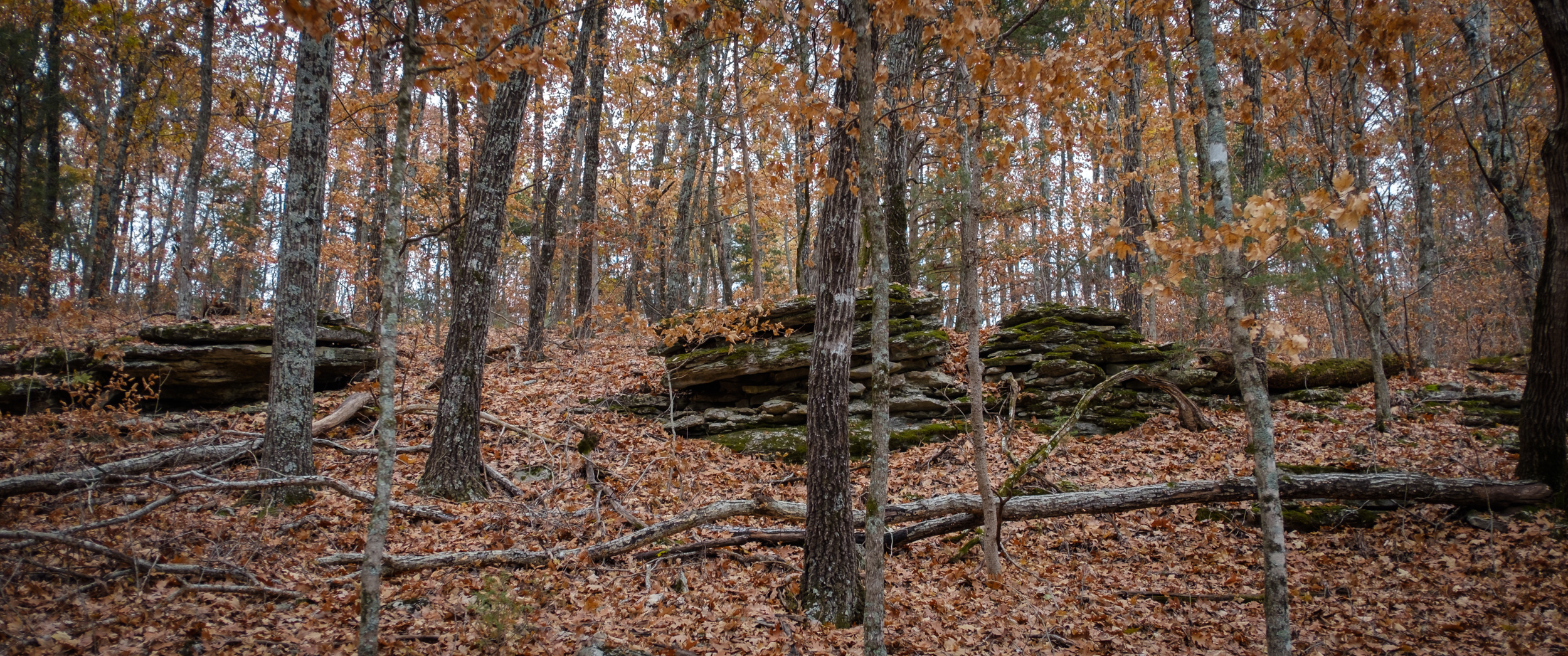 Lots of crunchy leaves to hide the trail. Four days backpacking at Hercules Glades.