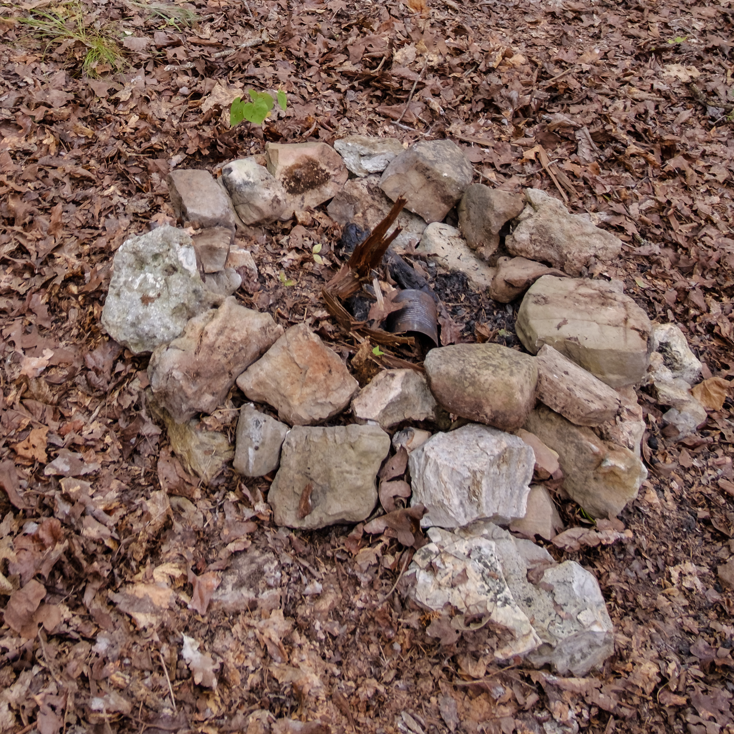 Where Piney Creek meets Table Rock Lake. My plan; to bushwack along the north (left in this picture) side and find somewhere to stay for a couple of nights. With that much water, my pack’s weight had almost doubled (6 liters is a tad under 14.5lbs). Fortunately, I didn’t plan to hike much further. I passed the fire rings near the lake, then bushwhacked along the northern shore, keeping an eye out for the ‘ideal spot’. I didn’t have to go far before I found an old fire ring well back from the lake, but with good views through the trees. I was actually surprised how little undergrowth there was under the trees. There was lots of poison ivy around, but it was easily avoided.