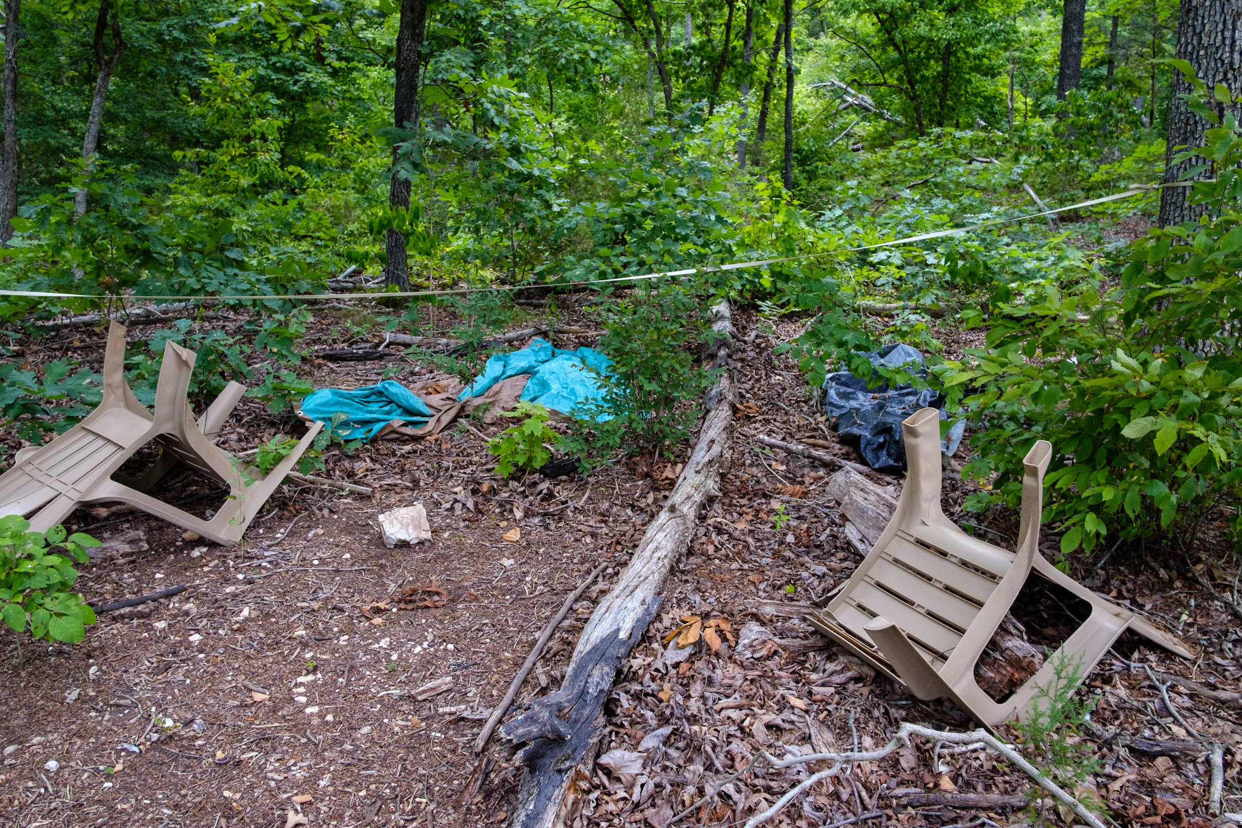 View looking South West. I bushwhacked along the side of the hollow, finding three hunting/fishing camps in the process. It seems many Ozarkians don’t understand the concept of ‘Leave no Trace’. Leave no trace … Unless you think you can get away with it.