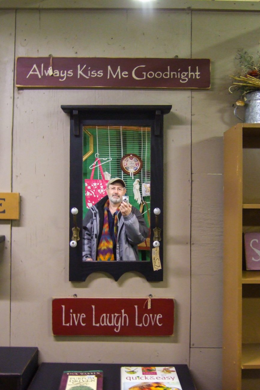 Always Kiss Me Goodnight – I spotted these signs and the conveniently placed mirror. I couldn’t miss the opportunity for a self-portrait.